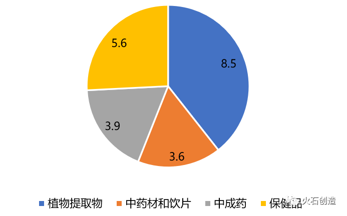 市场需求是创新发展的核心驱动力。根据火石对国家统计局、工信部数据的整理,在过去五年间,国内中成药市场规模从6700亿元上升至7400亿元,中药饮片市场规模从1900亿元上升至2300亿元,中医药在国内实现了市场规模稳定增长。然而,中医药进出口规模与国内相比仍然较小,亟需通过创新发展,实现由内向外的市场拉动。