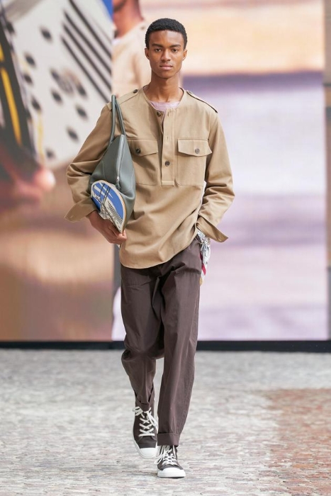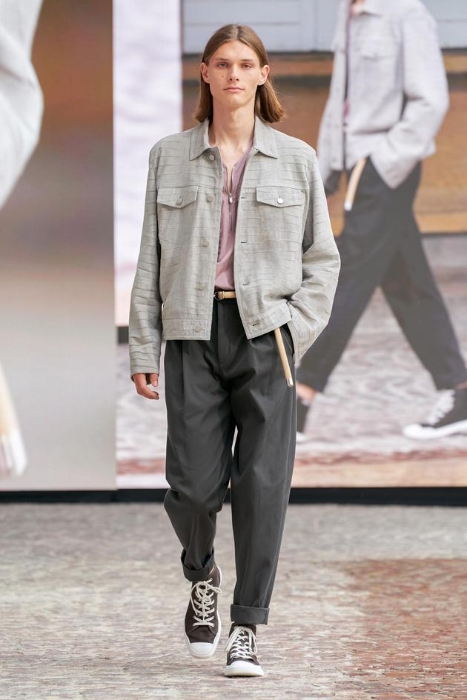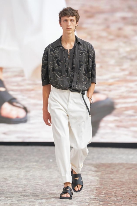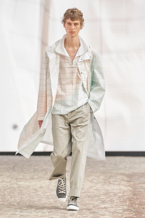 6月26日,在Auguste Perret建造的石制庭院里,Véronique Nichanian与实验戏剧导演Cyril Teste再度联手,在户外呈现了2022夏季男装系列时装秀。