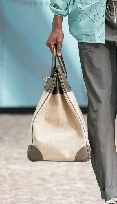 与主题当中的帆船与微风相连,腰带也选用在帆船上常见的长绳。除了经典的H形爱马仕腰带以外,单条和双条的挂钩式腰带的出现率极高。要出游的人手上的包袋也变得格外的大,整个系列里给到小型手袋只有贴身的扁平包,更多的笔墨留给了那些经典的中型大型手袋。