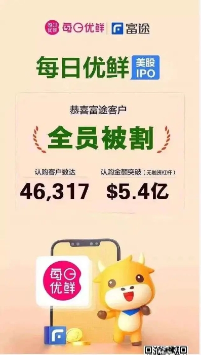每日优鲜和老虎证券、富途证券搞了个活动,APP内充值100块可以额外中签20股。