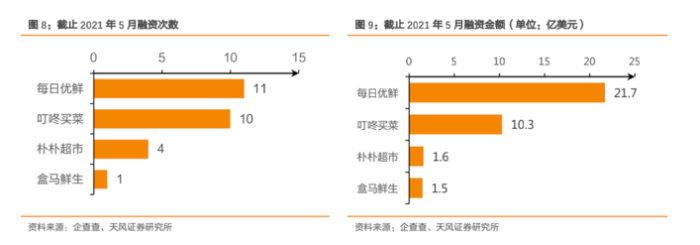 每日优鲜创立得早,所以融到了更多的资金。
